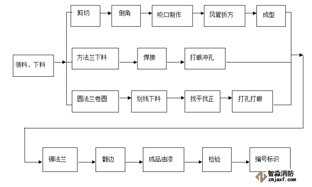 在風管加工前,應該預先對風管進行編號預排布,合理布置開風口、三通、支架等部位管段長度;風管各種標準件提前制作樣品,大面積施工按樣品標準制作。