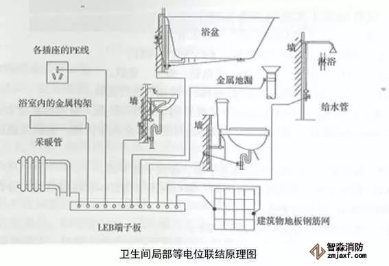 8、等電位連接:按圖紙設計預埋或明裝接地干線,接地干線與等電位箱接地排連接,等電位箱與裸露金屬構件連接。等電位接地干線應從與接地裝置有不小于2處直接連接的干線引出,等電位連接干線或局部等電位箱間形成環路,支線間不應串聯。等電位箱體表面應標識明確。