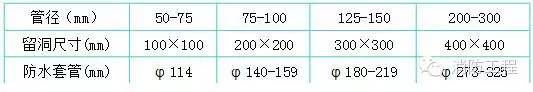 3.嚴格按照標準圖集加工制作防水套管、穿墻套管,套管長度按結(jié)構(gòu)施工圖尺寸確定,套管管徑參照下列標準: