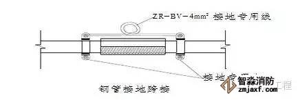 4.鋼管絲扣連接時在管接頭的兩端裝設(shè)專用接地跨接線,如圖。