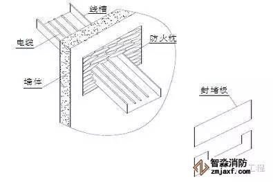 7.封閉插接母線在穿過墻及防火樓板時,在母線周圍填充防火堵料,具體做法見上圖。