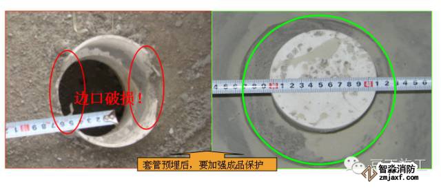 (3)套管預(yù)埋后,露出混凝土地面的部分需用細混凝土或水泥砂漿作保護圈,以免造成破損)。