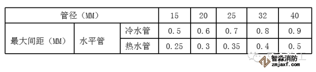 11、PP-R管明敷支架最大間距見下表: