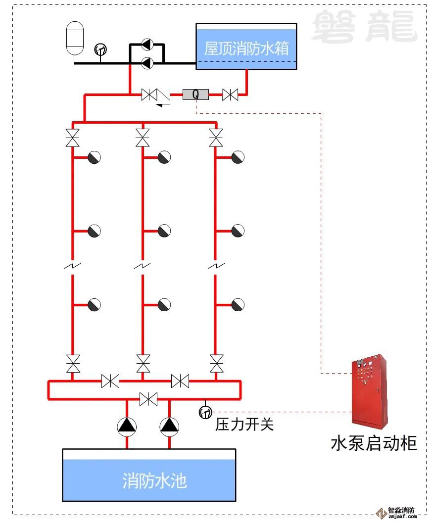 對(duì)于這類系統(tǒng),消防水泵出水干管上應(yīng)設(shè)置壓力開(kāi)關(guān),高位消防水箱出水管上應(yīng)設(shè)置流量開(kāi)關(guān),存在問(wèn)題及解決措施: