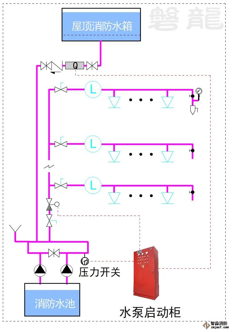 對(duì)于這類系統(tǒng),消防水泵出水干管上應(yīng)設(shè)置壓力開(kāi)關(guān),高位消防水箱出水管上必須設(shè)置流量開(kāi)關(guān),存在問(wèn)題及解決措施:
