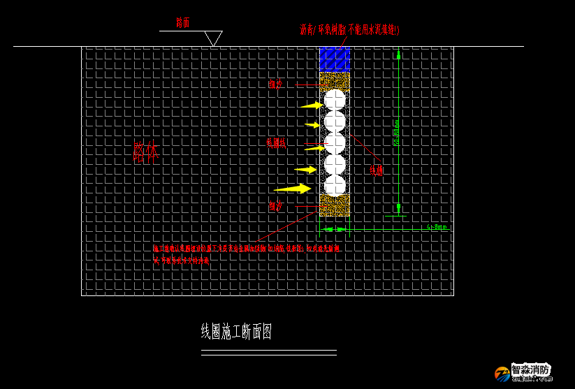 從這個圖中我們可以看出來,線圈埋設了5圈,黃色的線纜大家可以看到。