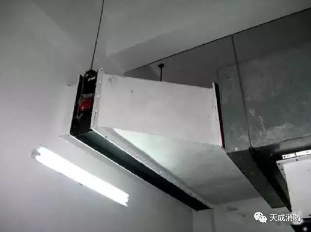 風管穿越防火墻應設有鋼板厚度1.6mm及以上的套管。套管內部應用玻璃棉等不燃材料封堵,外面用防火泥抹面。