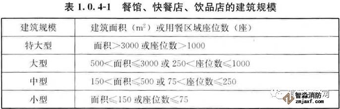 3、飲食建筑按建筑規(guī)模可分為特大型、大型、中型和小型,并應符合表1.0.4-1及表1.0.4-2的規(guī)定。