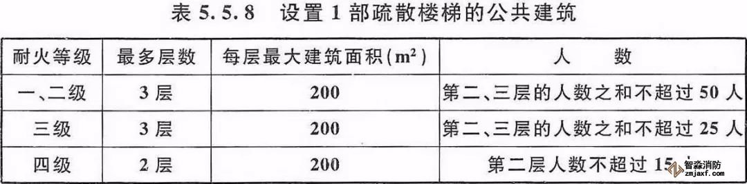 一、公共建筑內(nèi)每個防火分區(qū)或一個防火分區(qū)的每個樓層,其安全出口的數(shù)量應(yīng)經(jīng)計算確定,且不應(yīng)少于2個。設(shè)置1個安全出口或 1 部疏散樓梯的公共建筑應(yīng)符合下列條件之一:(5.5.8)