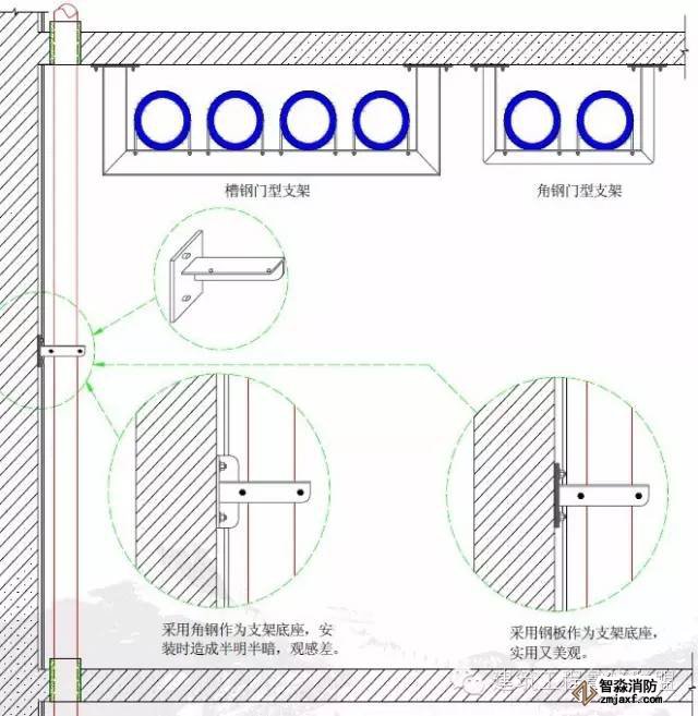 關鍵工序:墻面管道支架底座應采用鋼板底座。