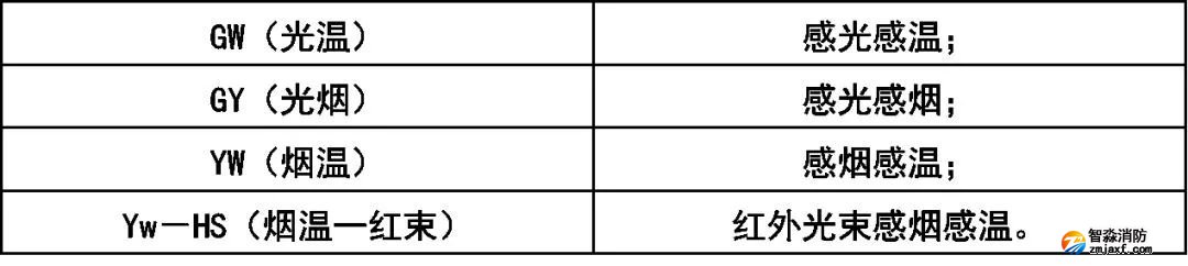 火災探測器分類代號: