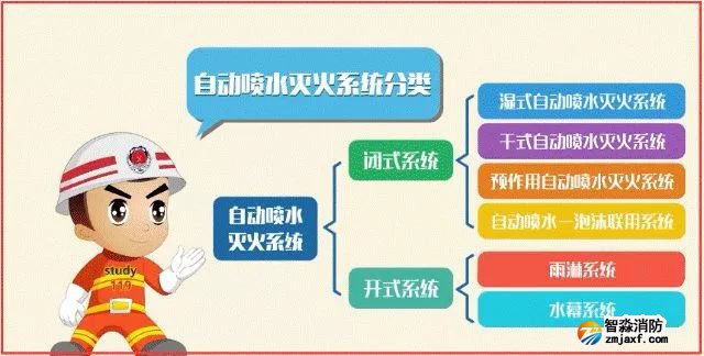 自動噴水滅火系統根據所使用噴頭的型式,可分為閉式自動噴水滅火系統和開式自動噴水滅火系統兩大類。