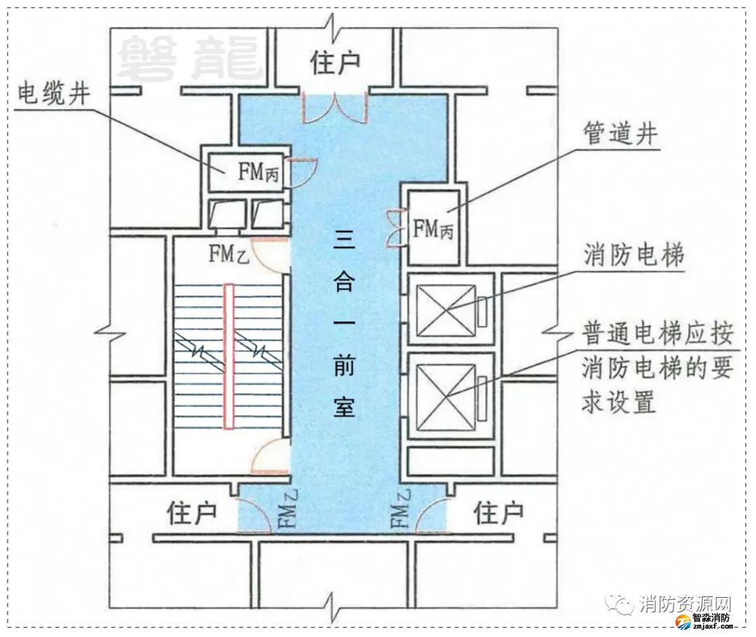一、住宅建筑前室允許設置管井(電井)檢查門,應僅限于戶門直接開向三合一前室和單一安全出口的合用前室,除此以外,管井(電井)檢查門不應設置在住宅建筑的前室 。