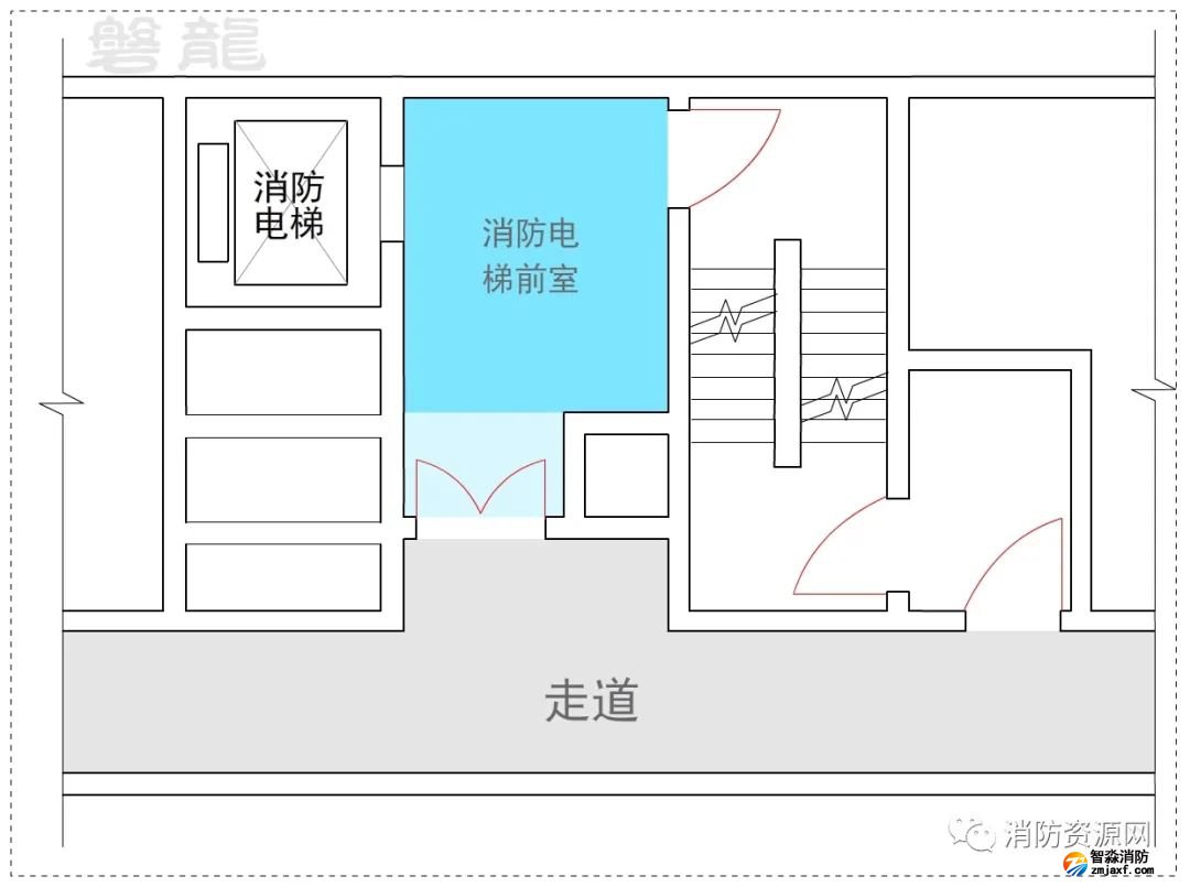 三、公共建筑人員較為繁雜,穿套前室會直接影響消防電梯前室的封閉性能,且人員不一定熟悉現場環境,封閉的消防電梯前室門可能導致疏散盲區,因此,公共建筑不應許可穿套消防電梯前室。