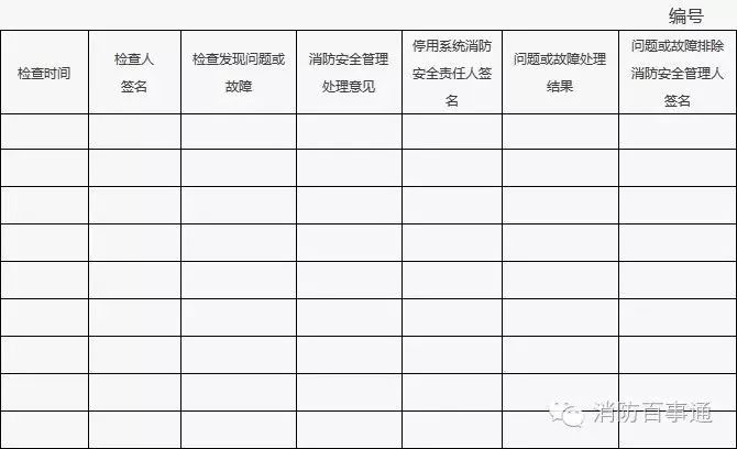 2、發現的問題或存在故障應在“實測記錄”欄中填寫,并及時處置;當場不能處置的要填報《建筑消防設施故障處理登記表》;