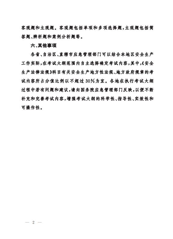 為做好中級、初級注冊安全工程師職業資格考試工作,按照《注冊安全工程師職業資格制度規定》《注冊安全工程師職業資格考試實施辦法》(應急〔2019〕8號)有關要求,應急管理部組織編制了《中級注冊安全工程師職業資格考試大綱》《初級注冊安全工程師職業資格考試大綱》,經商住房和城鄉建設部、交通運輸部同意,人力資源社會保障部審定,現予以印發施行。