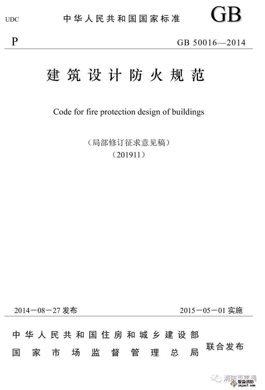 《建筑設計防火規范》GB 50016(局部修訂征求意見-201911)公告如下: