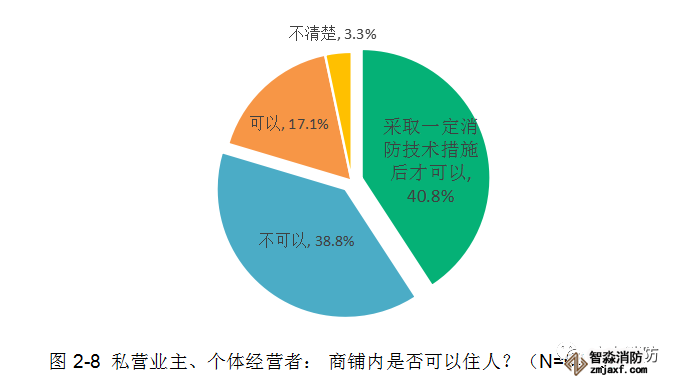 今年,廣東消防針對我省私營業主和個體經營者展開調查的數據顯示,有79.6%的受訪者對于“商鋪內是否可以住人”這一消防知識有一定正確認知:38.8%的受訪者明確表示商鋪內不可以住人,約40.8%的受訪者表示采取一定消防技術措施后才可以住人,但仍有17.1%的受訪者存在錯誤觀念,認為商鋪內可以直接居住。