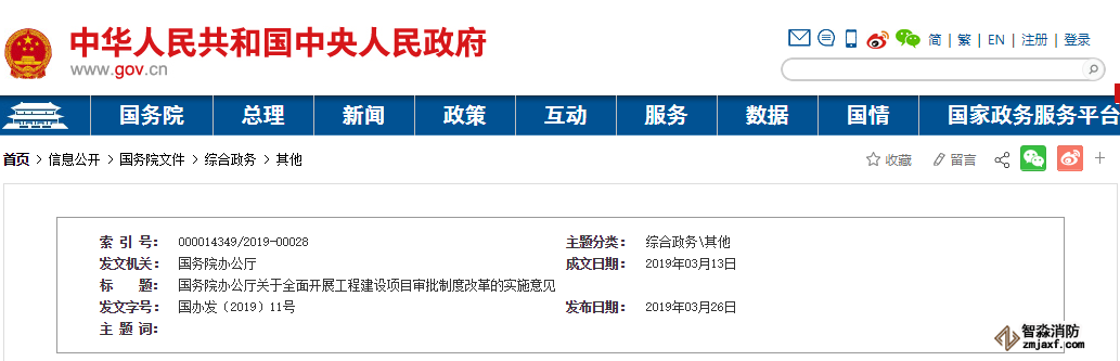 3月26日,國務院辦公廳印發《關于全面開展工程建設項目審批制度改革的實施意見》。將消防、人防、技防等技術性審查并入施工圖設計文件審查,相關部門不再進行技術審查。