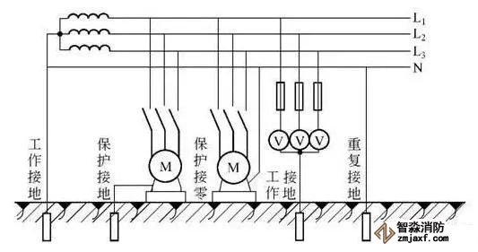 重復(fù)接地就是在中性點(diǎn)直接接地的系統(tǒng)中,在零干線的一處或多處用金屬導(dǎo)線連接接地裝置。