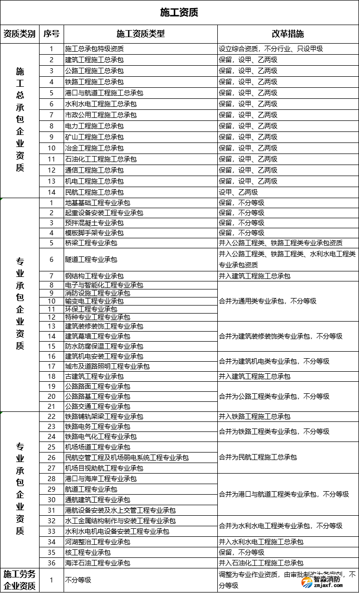 2014年11月,住建部將專業承包資質由60個壓縮至36個。