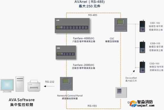 FANFARE-2000四區(qū)型極早期煙霧偵測主機(jī),可以通過輸入模塊接入火災(zāi)自動(dòng)報(bào)警報(bào)警控制器;也可以全部聯(lián)網(wǎng),并由AVA系統(tǒng)管理軟件對(duì)整個(gè)系統(tǒng)進(jìn)行設(shè)置和監(jiān)控。AVA系統(tǒng)管理軟件安裝在消防控制室的計(jì)算機(jī)上,用戶可以通過它對(duì)整個(gè)探測系統(tǒng)的所有性能進(jìn)行設(shè)置、調(diào)試和監(jiān)控。
