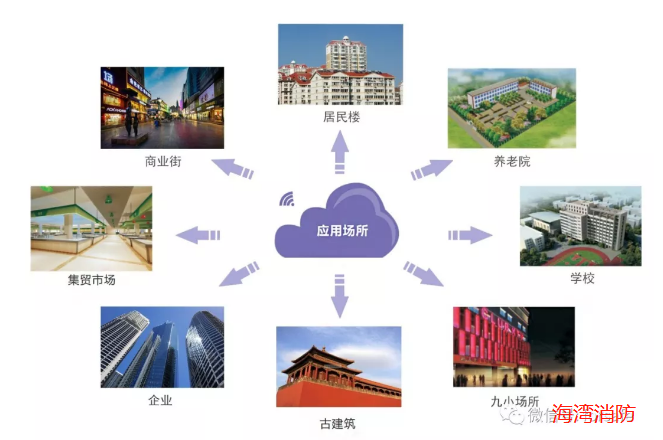 適用于九小場所、高層建筑、古建筑等多種場所、多種點位要求,如商業街、貿易市場、企業、學校、城市居民樓、養老院等。小點位系統也具備極高的成本優勢。