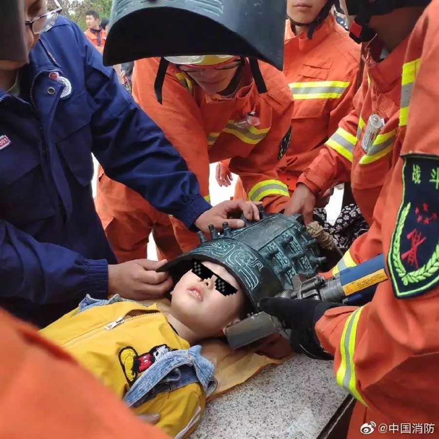 原來是醫院里面一個按摩床,小孩頭卡在床洞內....