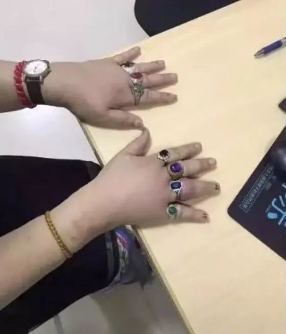 十根手指戴了九枚戒指,