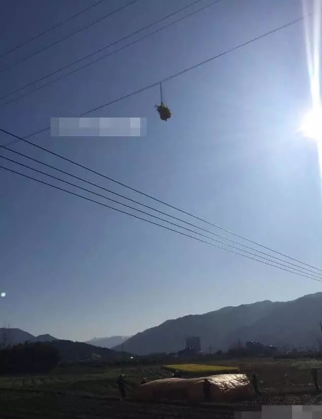 結果掛在高壓線上面。