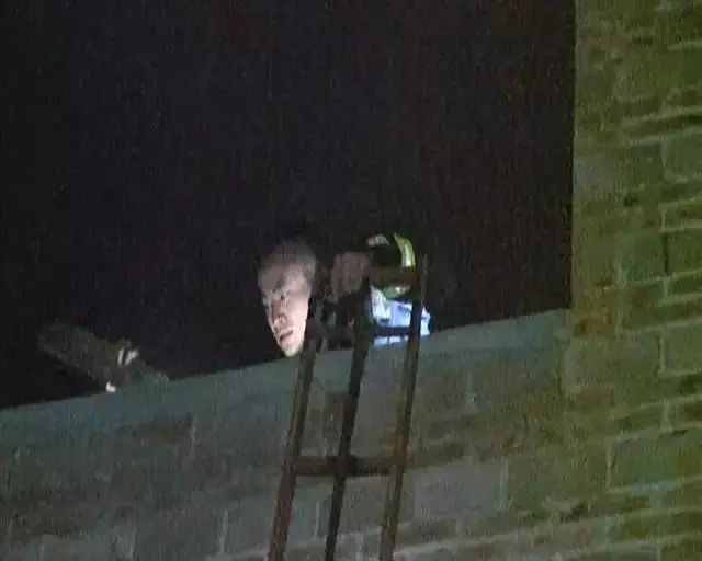 圖為楊科璋到達著火民房樓頂