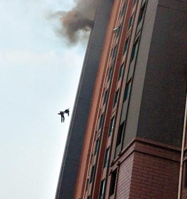 一人不幸墜樓,另一人伸手去拉