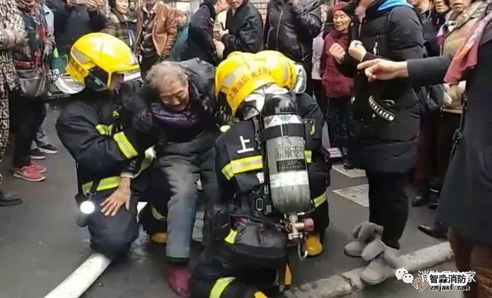 2018年1月5日中午,普陀區一民宅室內發生火災。消防戰士趕到時獲悉,在滅火救援期間,一名90高齡的老奶奶被消防員背出火場,狂奔大約有400米左右。到了弄堂口,兩名消防員以腿做凳,供老人休息。