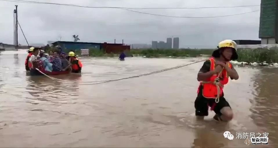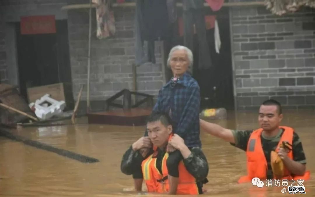 6月8日,受臺風“艾云尼”外圍影響,江西省泰和縣境內普降暴雨,造成水位暴漲,這位老人因左腿有疾行動不便,沖鋒舟無法靠近,為了不使她身上被水弄濕,消防戰士讓其騎在肩上,徒步趟過齊胸深的洪水。