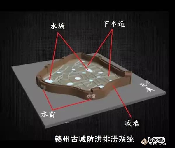贛州古城防洪排澇系統分為4個部分:福壽溝、水塘、水窗、城墻