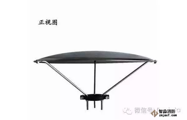 如上圖所示,消防集熱罩為半弧圓形,下面有個(gè)三腳托盤,托盤底部與消防噴淋頭進(jìn)行固定,上面半弧圓形不銹鋼盤是集熱板。